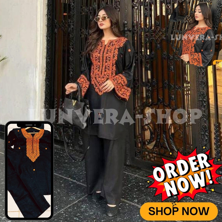 ✨ Rooh-e-Sham 2-Piece Embroidered Cotton Dress | Premium Overlock Finish (Medium & Large)
