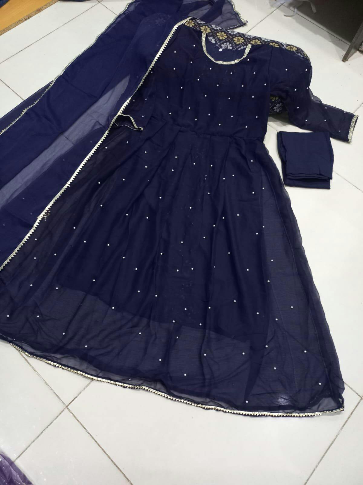 Make every moment shine with our Luxury Pearl Lace 3PC Long Flare Maxi Dress, designed for weddings, parties, and festive occasions. This outfit features front & back pearl lace work on premium chiffon fabric, creating a rich and elegant look that captures all eyes.